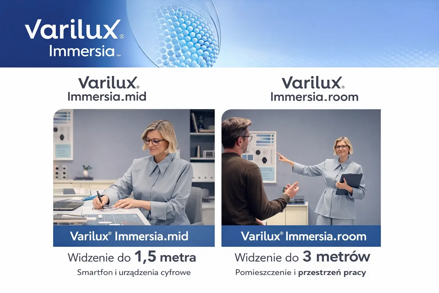 Nowoczesne okulary progresywne zapewniające komfort widzenia na każdą odległość.
