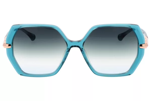 Model Ana Hickmann AH9363 T01 56 to połączenie nowoczesnego designu z kobiecą subtelnością. Turkusowa, transparentna oprawka w kształcie motyla nadaje okularom lekkości i świeżości, a gradientowe soczewki w odcieniach zieleni dodają wyrafinowania. Idealne dla kobiet ceniących sobie styl i komfort na co dzień.